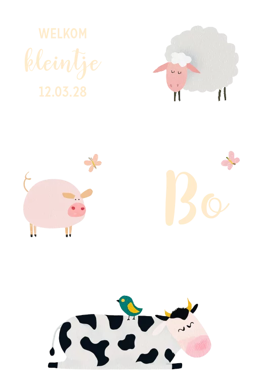 Dit is een lieve set van houten blokken. Op de blokken staan de illustraties van boerderijdieren. Ook zijn op de blokken de geboortegegevens te zien. De blokken kunnen naar wens aangepast worden in onze online opmaaktool.