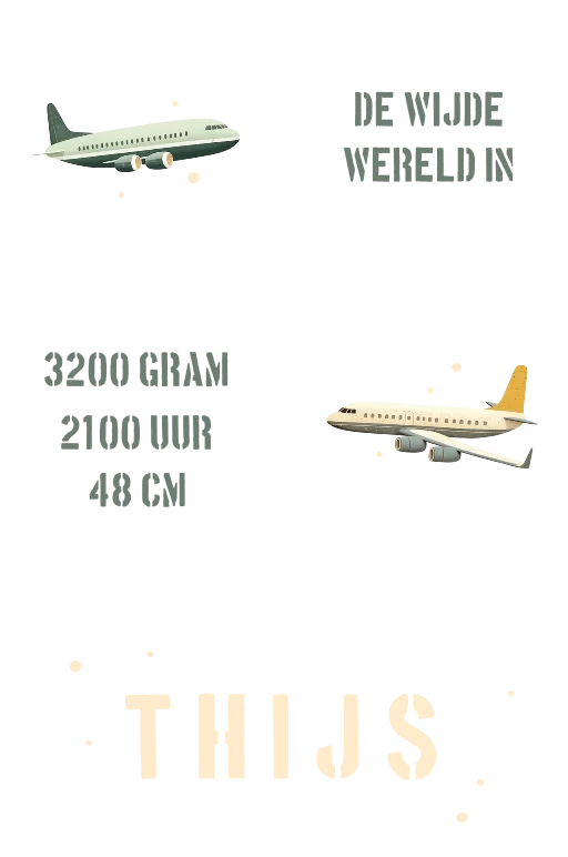 Dit is een vrolijke set van houten blokken. Op de blokken staan de illustraties van vliegtuigen en de naam van je kleintje. Ook zijn op de blokken de geboortegegevens te zien. De blokken kunnen naar wens aangepast worden in onze online opmaaktool.