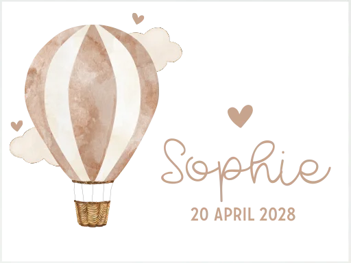 Dit schattige kinderkoffertje is multifunctioneel: het koffertje kan gebruikt worden als speelkoffertje of om mooie herinneringen in te bewaren, maar het is natuurlijk ook een perfect kraamcadeau. Op het koffertje staat de illustratie van een luchtballon en lees je de naam van het kind. Het koffertje is helemaal naar wens aan te passen in onze online editor.