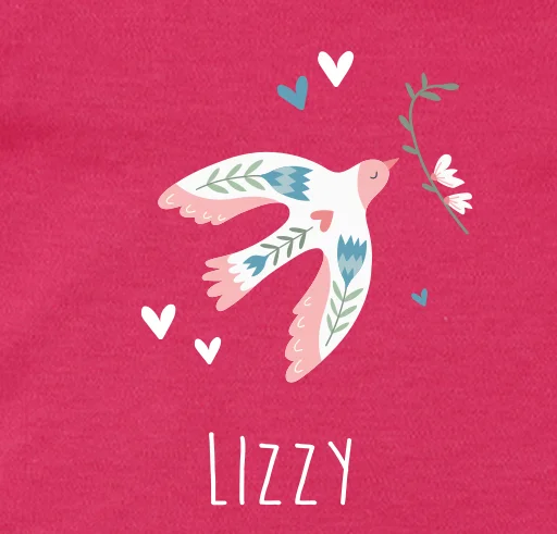 Een perfect kraamcadeau of een lief rompertje voor je eigen kindje. Op de voorkant staat een sierlijke vogel met de naam van het kindje. Je kunt het design gemakkelijk personaliseren of helemaal aanpassen in de editor.