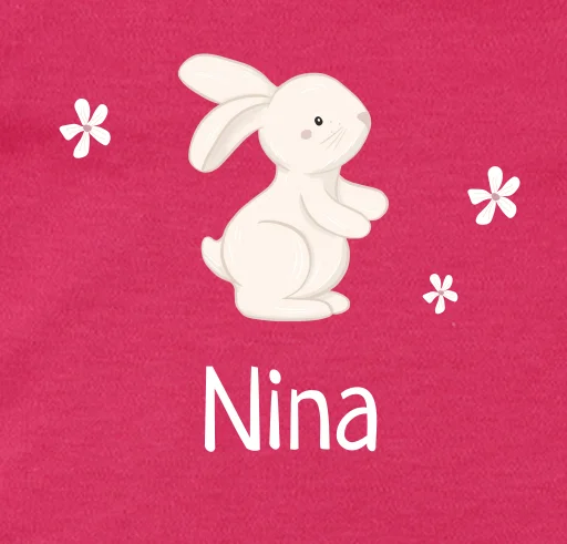 Dit is een lief rompertje voor je kleintje. Op het rompertje staan de naam, de illustratie van een konijntje en bloemetjes. Het rompertje is naar wens aan te passen in onze online opmaaktool.