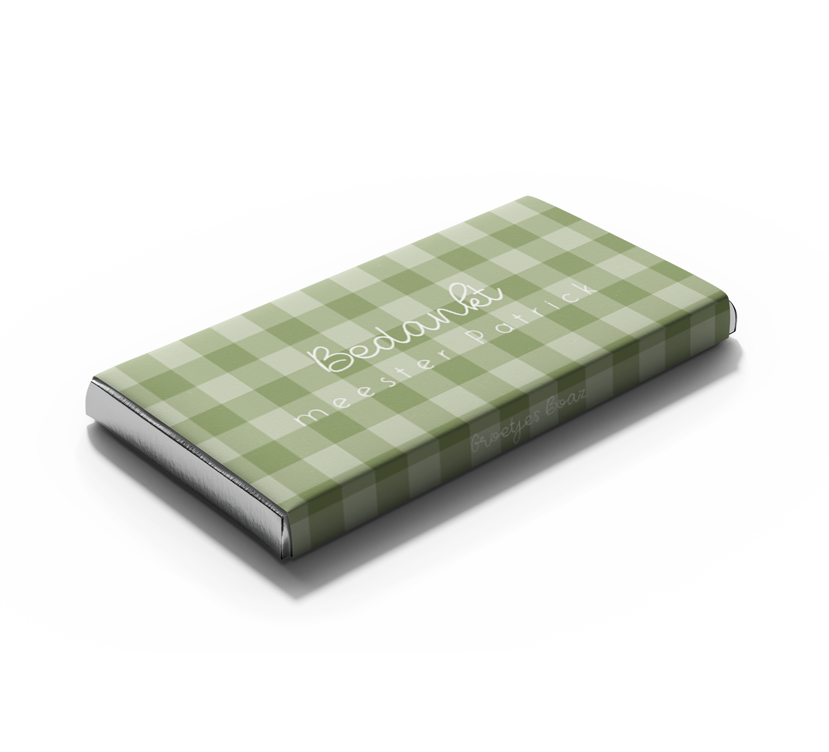 Geef de meester een uniek en gepersonaliseerd cadeau met deze wikkel en tony chocoladereep! De wikkel heeft een groene geruite achtergrond. Daarnaast zie je de tekst: 'Bedankt Meester ... '. Pas de wikkel helemaal naar wens aan in onze online editor.