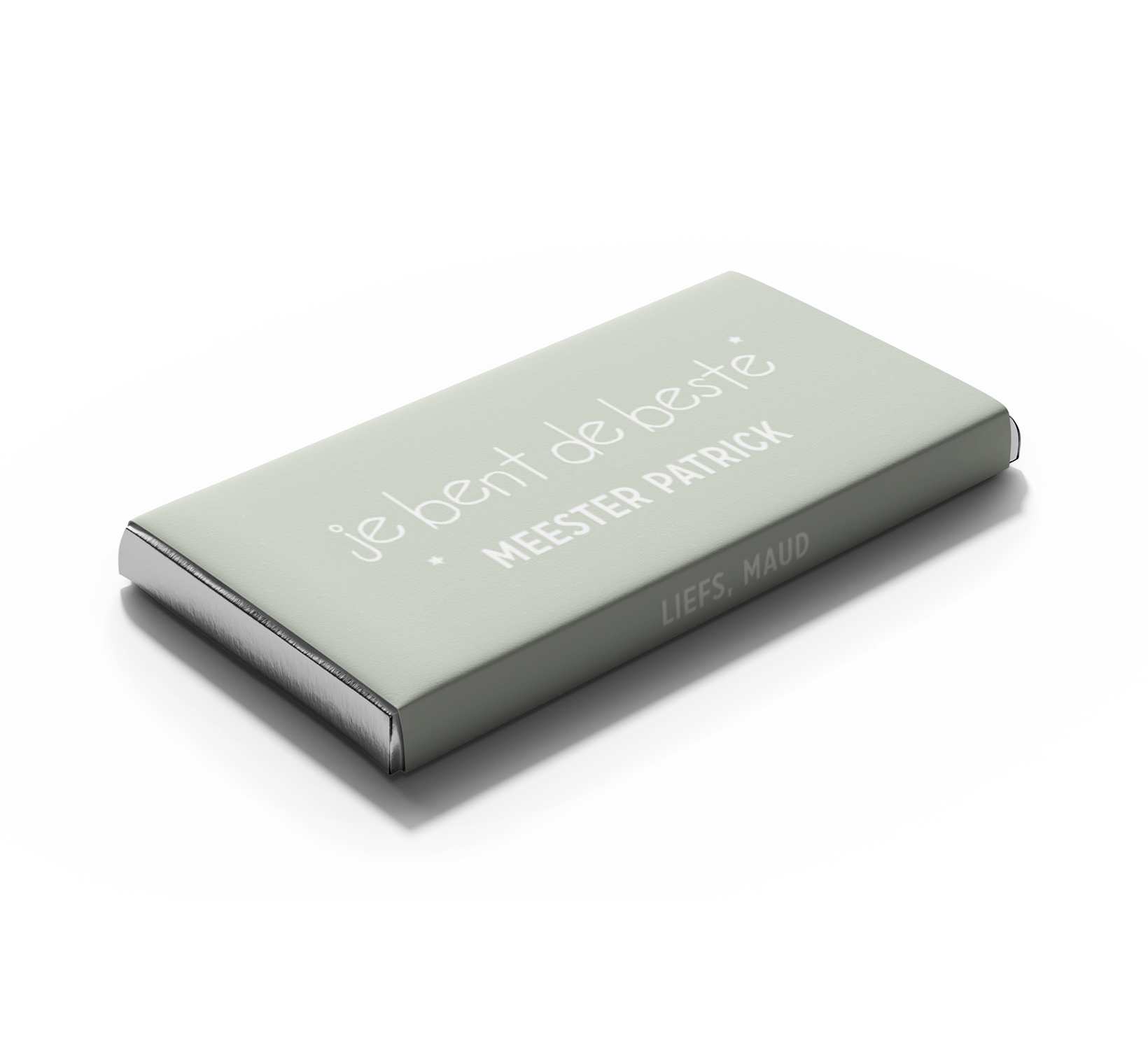 Tony's Chocolonely wikkel groen met tekst voor Meester