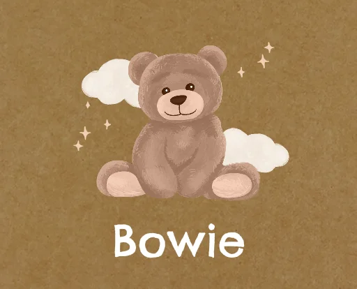 Een lieve cadeaudoos met de illustratie van een zittend beertje, wolkjes, sterretjes en naam.