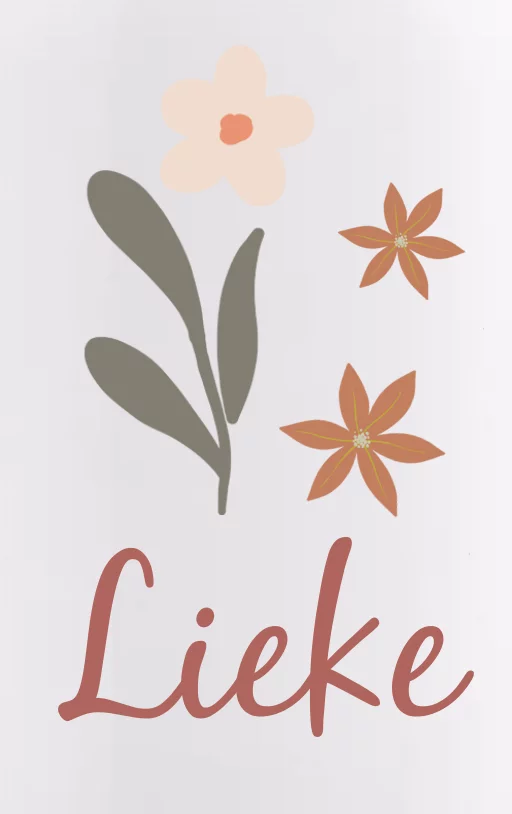 Een toffe Dopper drinkfles met naam. Naast de naam zie je een lieve illustratie bloemetjes. Pas de Dopper naar wens aan in onze online opmaaktool. Let op. Het is op dit moment niet mogelijk om de kleur wit op Dopper flessen te drukken. Deze kleur is niet zichtbaar op de fles.