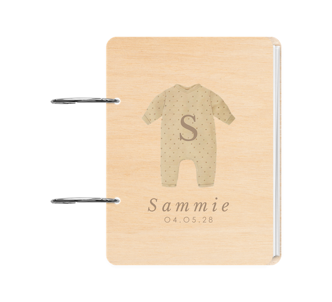 Houten bewaarbundel met illustratie van babypakje