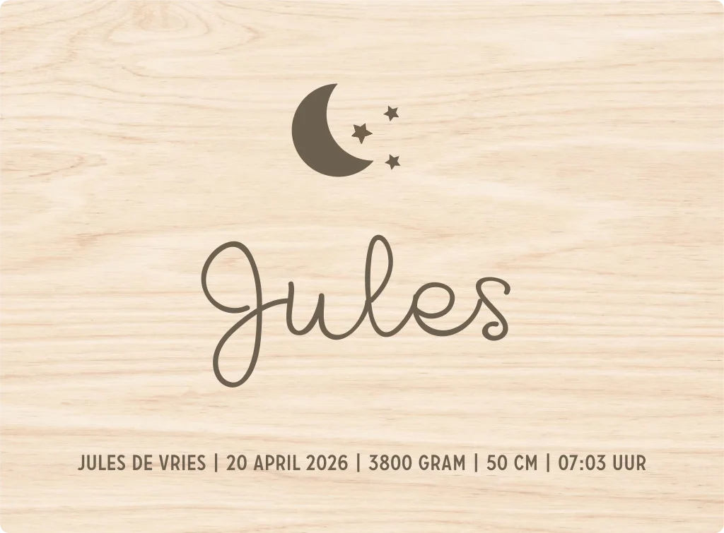 Hippe houten box als kraamcadeau of voor je eigen kindje. Deze houten memorybox is perfect voor spulletjes uit de zwangerschaps- en babytijd. Pas de memorybox naar wens aan in de online editor.