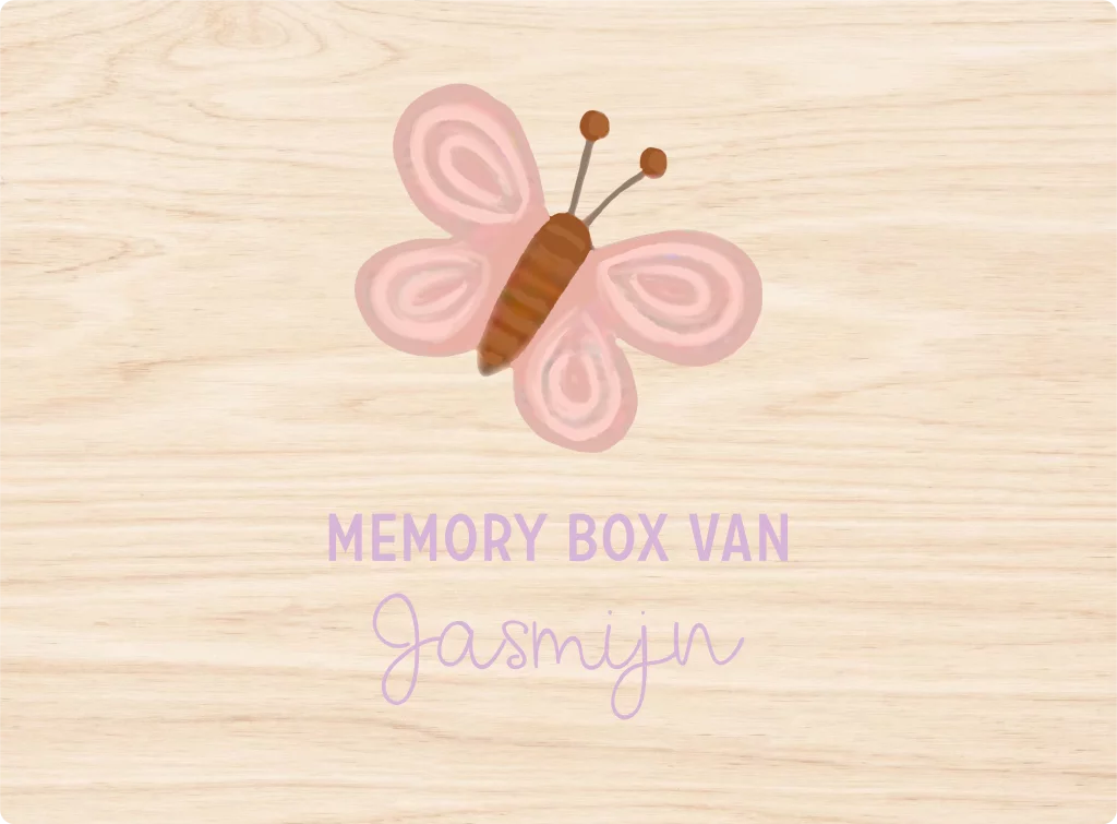 Prachtige houten box voor jullie herinneringen. Deze houten memorybox is perfect voor spulletjes uit de zwangerschap en babytijd. Op deze memorybox zie je een een watercolor vlinder en de naam van je kleintje. Leuk als kraamcadeau of voor je eigen kindje.