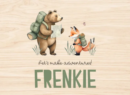 Geef deze mooie houten box als kraamcadeau of gebruik het voor je eigen kindje. Deze memorybox is perfect om spulletjes uit de zwangerschaps- en babytijd in te bewaren. Op deze avontuurlijke memorybox staat de illustratie van een beer en vos met rugzakjes op. Maak de box extra persoonlijk door de naam van het kindje toe te voegen. De memorybox is naar wens aan te passen in onze online editor.