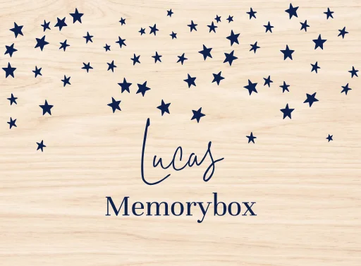 Een prachtige houten kist voor jullie herinneringen. De memorybox is perfect voor het bewaren van spulletjes uit de zwangerschap en babytijd. Op deze memorybox zie je blauwe sterretjes. Onder de sterren lees je de naam van het kindje. Pas de memorybox eenvoudig zelf aan.