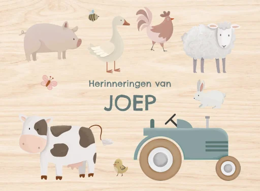 Hippe houten box als kraamcadeau of voor je eigen kindje. Deze houten memorybox is perfect voor spulletjes uit de zwangerschaps- en babytijd. Op deze memorybox zijn verschillende boerderijdieren te zien. Pas de memorybox eenvoudig zelf aan.