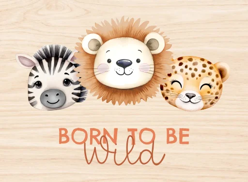 Een prachtige houten kist voor jullie herinneringen. De memorybox is perfect voor spulletjes uit de zwangerschap en babytijd. Op deze memorybox zie je vrolijke illustraties van verschillende jungledieren zoals een zebra, panter en leeuw. Onder de illustraties lees je de tekst: 'born to be wild'. Pas de memorybox eenvoudig zelf aan.