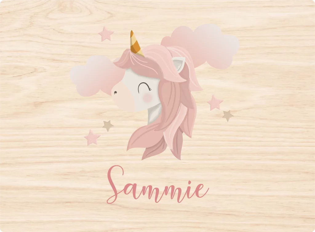 Prachtige houten memorybox als kraamcadeau of voor je eigen kindje. Deze memorybox is perfect voor spulletjes uit de zwangerschaps- en babytijd. Op deze memorybox staat een illustratie van een unicorn met wolkjes en sterretjes, daar onder staat de naam van je kind. Pas de memorybox eenvoudig zelf aan.