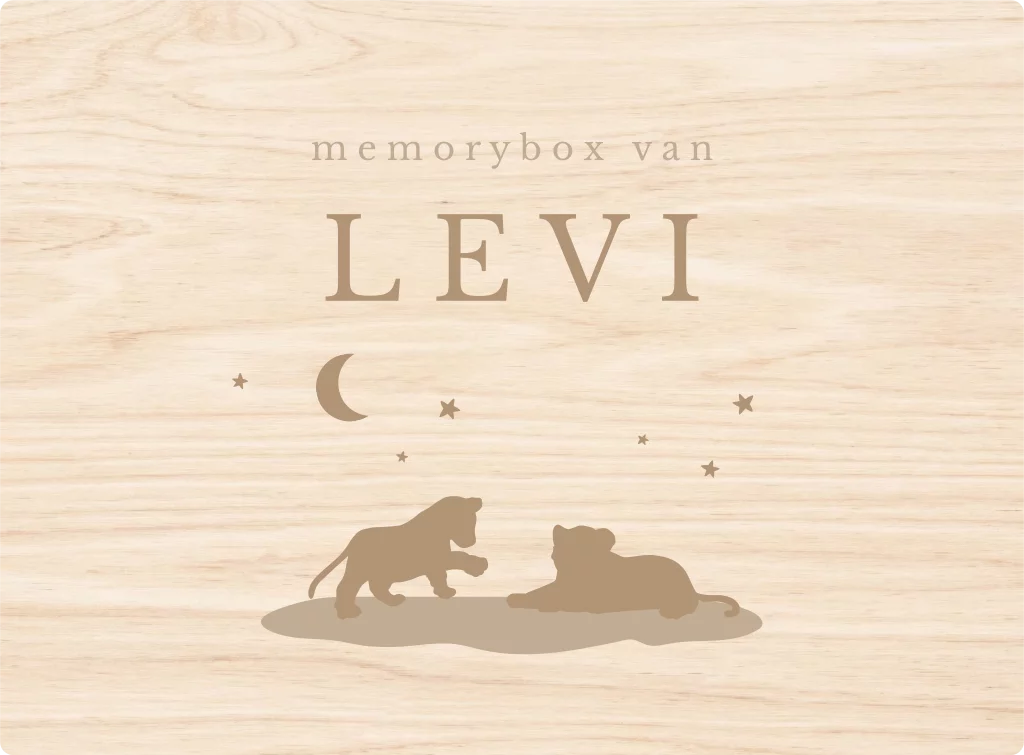 Lieve houten box als kraamcadeau of voor je eigen kindje. Deze houten memorybox is perfect voor spulletjes uit de zwangerschaps- en babytijd. Op deze memorybox zijn welpjes, sterretjes en de naam van het kleintje te zien. Pas de memorybox eenvoudig zelf aan in de online editor.