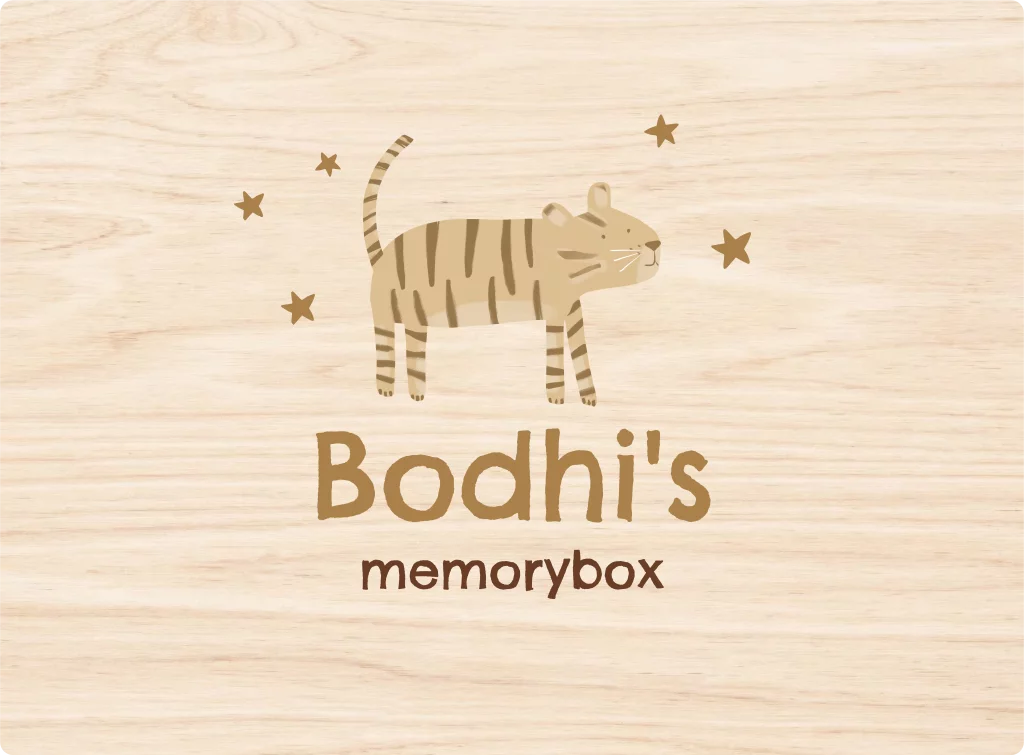 Neutrale memorybox met tijger, sterren en naam