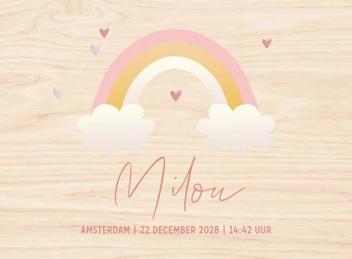 Prachtige houten memorybox als kraamcadeau of voor je eigen kindje. Deze memorybox is perfect voor spulletjes uit de zwangerschaps- en babytijd. Op deze memorybox staat een kleurrijke regenboog met hartjes er omheen, daar onder staat de naam van je kind en de geboortegegevens. Pas de memorybox eenvoudig zelf aan.