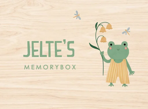 Geef deze mooie houten box als kraamcadeau of gebruik het voor je eigen kindje. Deze memorybox is perfect om spulletjes uit de zwangerschaps- en babytijd in te bewaren. Op de memorybox staat de illustratie van een kikker met bloemen. Maak de box extra persoonlijk door de naam van het kindje toe te voegen. De memorybox is naar wens aan te passen in onze online editor.