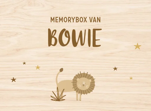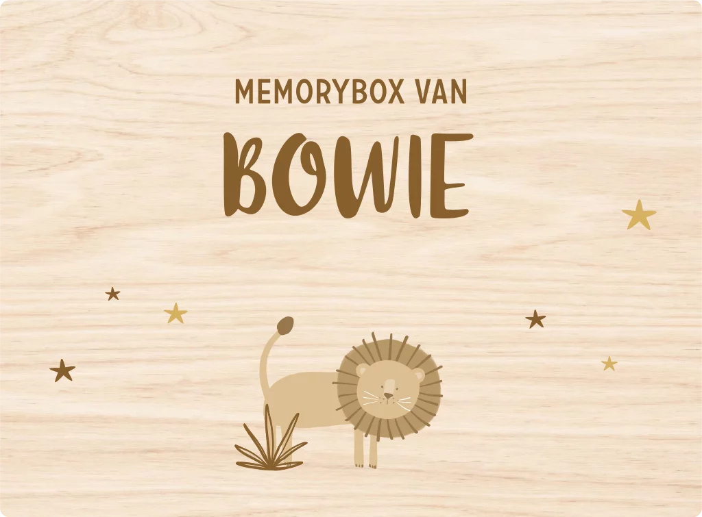 Avontuurlijke memorybox met naam, leeuw en sterren