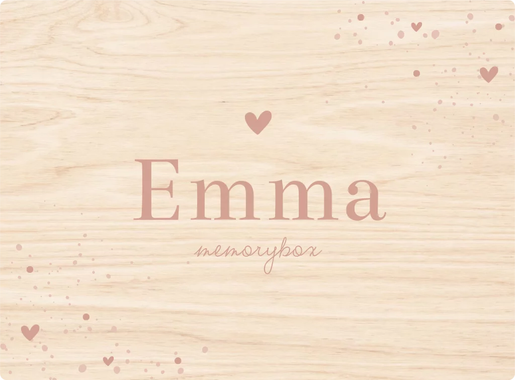 Prachtige houten box voor je eigen kindje of als kraamcadeau. Deze houten memorybox is perfect voor spulletjes uit de zwangerschap en babytijd. Op deze memorybox zie je een roze verfspetters en hartjes. In het midden lees je de naam van het kindje. Pas de memorybox eenvoudig zelf aan.