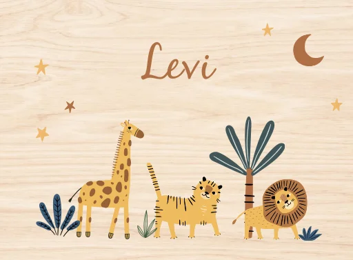 Hippe houten box als kraamcadeau of voor je eigen kindje. Deze houten memorybox is perfect voor spulletjes uit de zwangerschaps- en babytijd. Op deze memorybox zijn verschillende jungledieren te zien. Pas de memorybox eenvoudig zelf aan.
