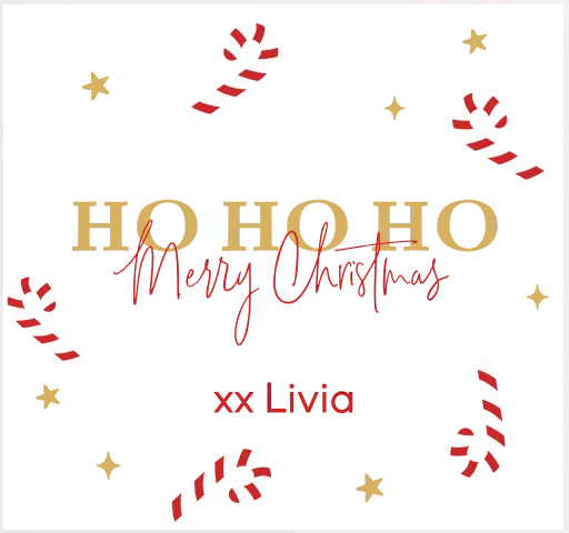 Met deze mok kom je helemaal in de sfeer voor de kerstdagen, perfect voor een kop warme chocomelk of thee. Op deze mok zie je de leuke illustraties van zuurstokken en sterretjes. In het midden lees je de tekst "HOHOHO Merry Christmas', met daaronder een naam. Pas het ontwerp naar wens aan in de editor.