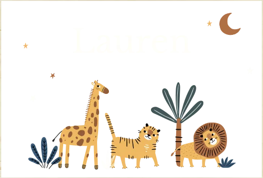 Bewaar de spulletjes van je kleintje in deze mooie opbergdoos. De doos wordt gemaakt van hout. Op de doos zijn de illustraties van een giraffe, tijger en leeuw te zien. Maak de opbergdoos extra persoonlijk door de naam van je kleintje toe te voegen.