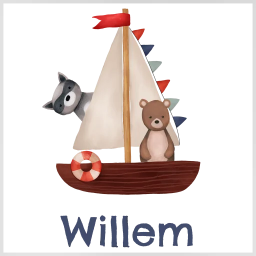 Kinderbeker met boot, dieren en naam