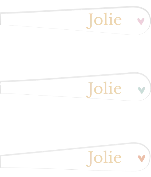 Een schattig kinderbestek voor jouw kleintje. Het bestek heeft een witte basis met daarop pastelkleurige letters. Het ontwerp kan je naar wens aanpassen.