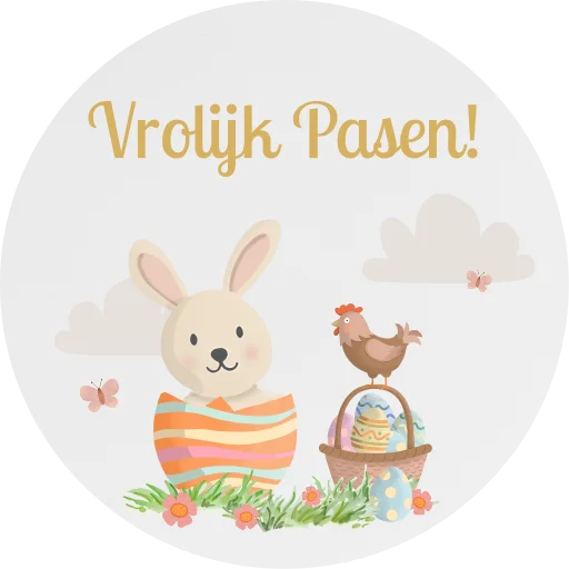 Het eten wordt een feestje met dit gepersonaliseerde kinderbordje! Op dit witte bordje staan de illustraties van een konijn in een ei en een kip op een mandje. Het ontwerp is volledig naar wens aan te passen.