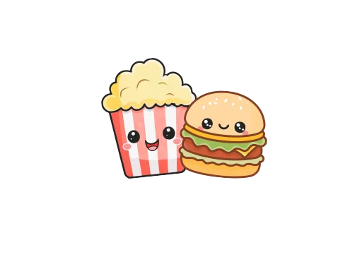 Dit is een vrolijke Mepal lunchbox Campus. Op de lunchbox staat de naam van het kind met de illustraties van verschillende illustraties in Kawaii stijl. Zo zie je een popcorn en hamburger, hoe leuk! Pas het ontwerp naar wens aan in onze online opmaaktool.