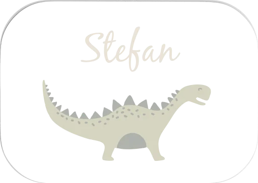 Een stoere Mepal broodtrommel Campus. Op de lunchbox staat de illustratie van een dino met daarboven de naam van de kleine. Pas het ontwerp naar wens aan.