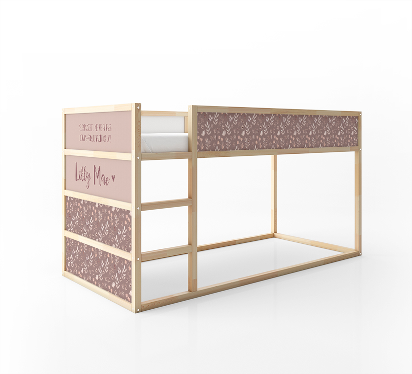 Sticker Ikea Kura bed met bloemenpatroon