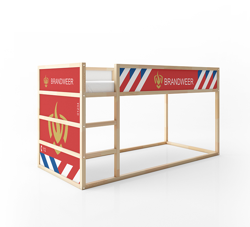Met deze stoere brandweer sticker tover je het Ikea Kura bed zo om in een brandweerauto. In onze online editor is de sticker volledig aanpasbaar naar wens. Zet bijvoorbeeld de naam van je kindje op een sticker om hem te personaliseren.