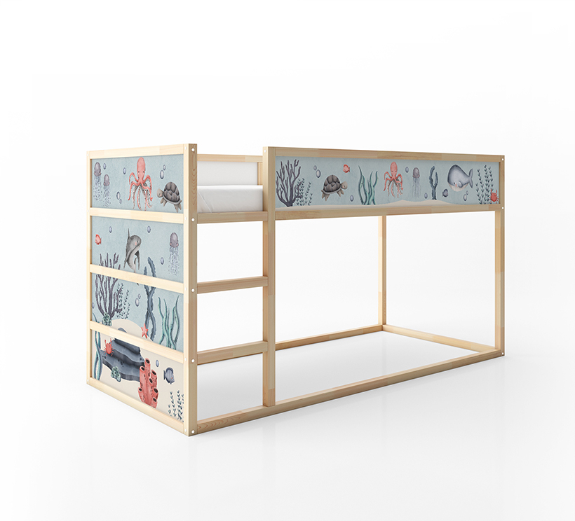 Maak je Ikea Kura bed helemaal hip met deze sticker met een onderwaterwereld thema erop.