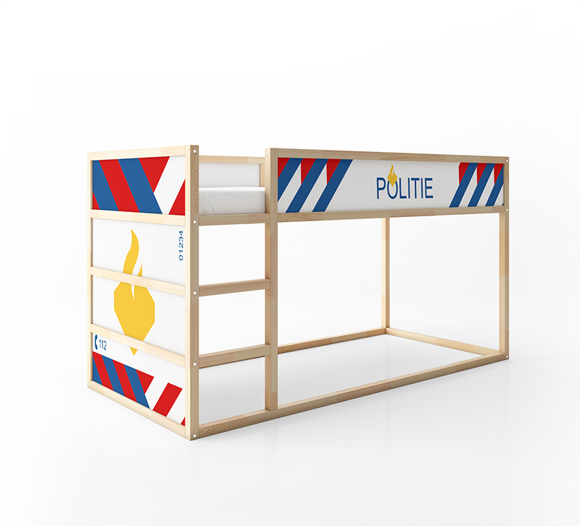 Maak de kinderkamer af met deze sticker voor het Ikea Kura bed. De sticker heeft een politie thema en kan helemaal naar wens aangepast worden in onze online opmaaktool.