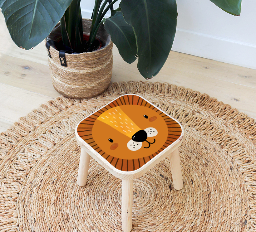 Bewerkbare sticker met leeuwenhoofd voor kinderkrukje Ikea