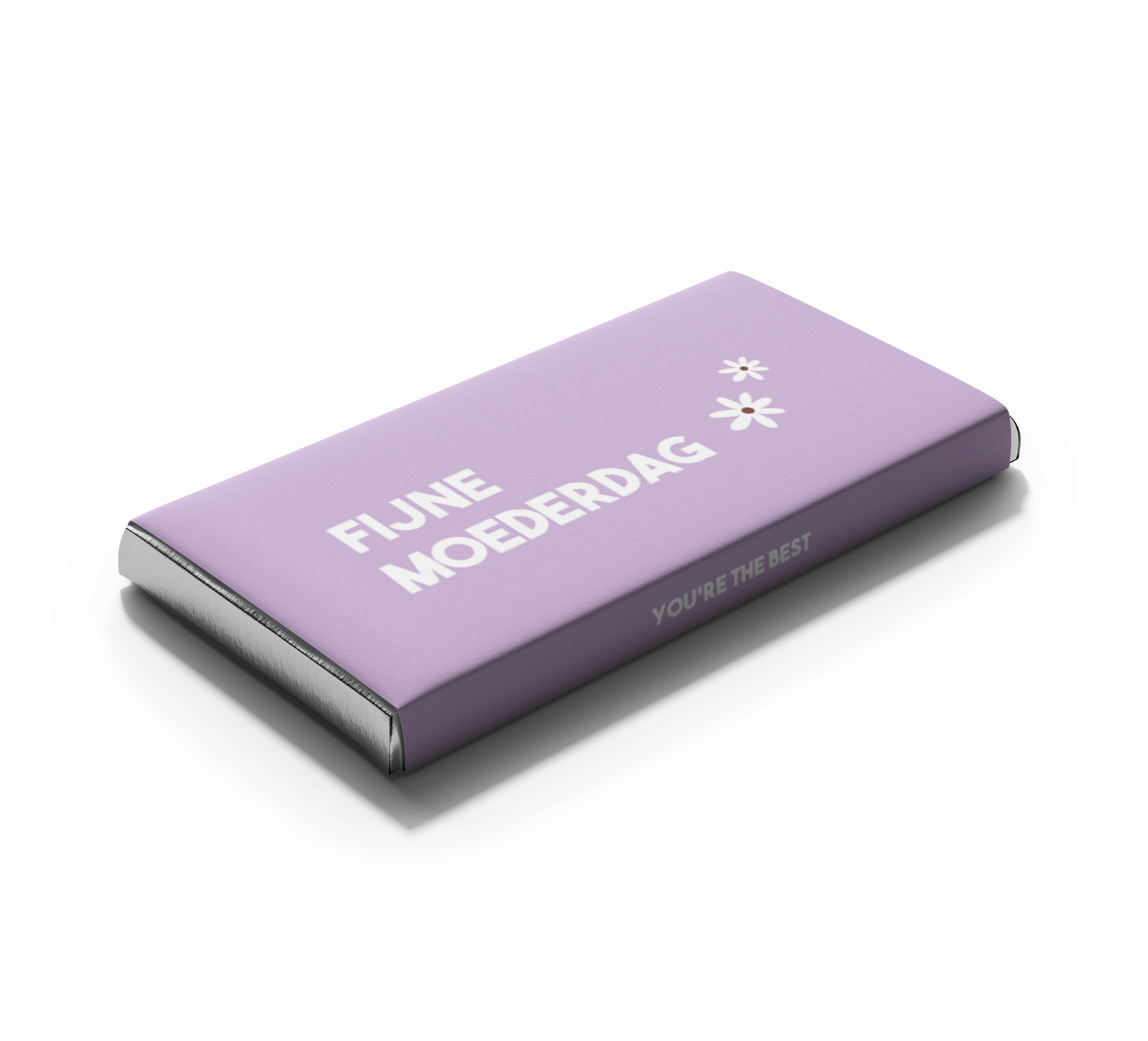 Geef de mama een uniek en gepersonaliseerd cadeau met deze wikkel en tony chocoladereep! De wikkel heeft een lila kleur met lieve bloemetjes en de tekst "Fijne moederdag". Pas de wikkel helemaal naar wens aan in onze online editor.