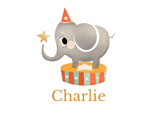 Handig opvouwbaar zonnescherm voor in de auto. Op het zonnescherm staat de naam met daarboven een circus olifantje. Het zonnescherm kan volledig naar eigen wens aangepast worden in onze online opmaaktool.