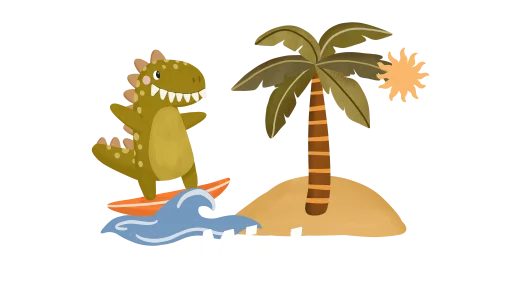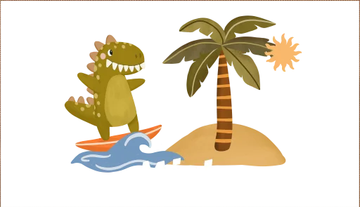 Dit koffertje is perfect voor een nachtje weg. Op de voorkant staat een illustratie van een dino die op een surfplank staat. Voeg de naam van je kind toe en maak dit koffertje extra persoonlijk!