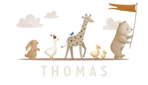 Dit koffertje is perfect voor een nachtje weg. Op het koffertje is een dierenparade te zien. Voeg de naam van je kind toe en maak dit koffertje extra persoonlijk!