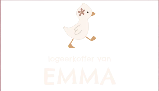 Dit vrolijke koffertje is perfect voor een nachtje weg. Op de voorkant staat een illustratie van een gansje met bloem. Voeg de naam van je kind toe en maak dit koffertje extra persoonlijk!
