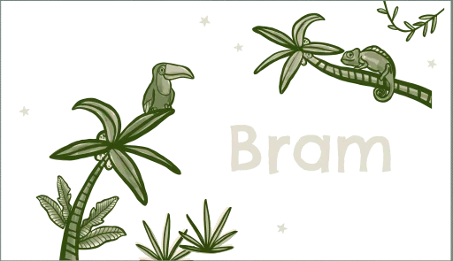 Dit koffertje is perfect voor een nachtje weg. Op het koffertje zijn een toekan en kameleon te zien. Voeg de naam van je kind toe en maak dit koffertje extra persoonlijk!