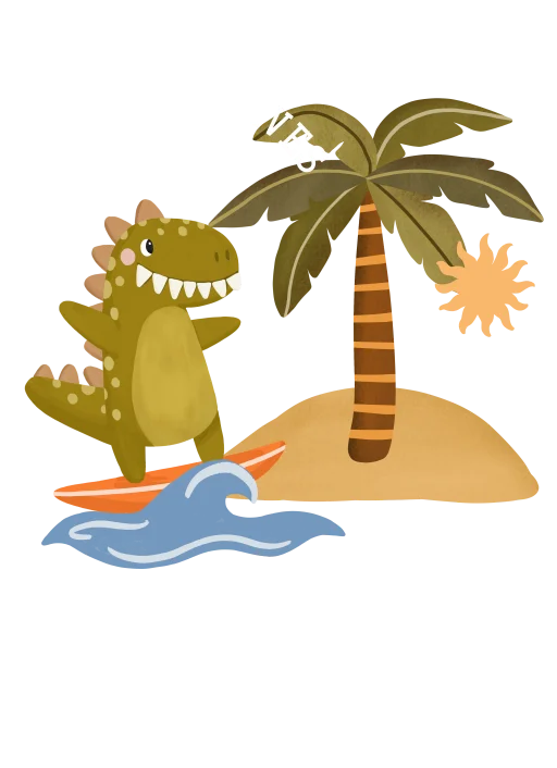 Dit is een stoere trolley om mee te nemen op reis. Op de trolley staat de illustratie van een dino op een surfplank. Maak de trolley extra persoonlijk door de naam in te vullen. De reistrolley kan helemaal naar wens aangepast worden in onze online opmaaktool.