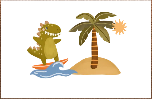 Een leuke toilettas voor echte vakantiegangers. Op de voorkant staat de naam en de illustratie van een dinosaurus op een surfplank. Pas de toilettas gemakkelijk aan in onze editor.