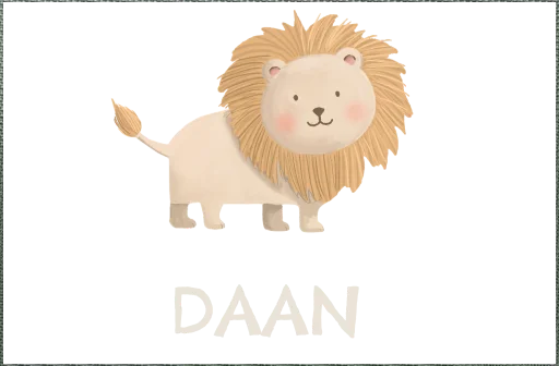 Een schattige toilettas. Op de voorkant staat de naam en een lieve illustratie van een leeuwtje.