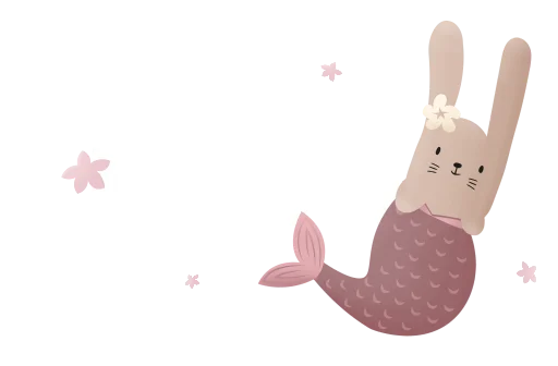 Een leuke toilettas! Op de voorkant staat de naam en een afbeelding van een konijn die als zeemeermin verkleed is. Pas de toilettas gemakkelijk aan in onze editor.