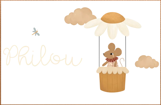 Een vrolijke en lieve toilettas voor onderweg. De toilettas heeft een naam in het midden. Daarnaast zie je een muisje in ee bloemen-luchtballon. Pas het ontwerp naar wens zelf aan.