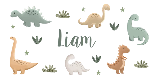 Een schattige RVS drinkfles met naam. De fles heeft illustraties van dinosaurussen, kleine sterren. Pas het ontwerp naar wens aan.