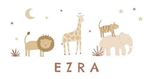 Een schattige RVS drinkfles met naam en daarboven allerlei jungledieren met een maantje en kleine sterretjes. Hoe leuk is dat! Maak het ontwerp nog persoonlijker door het naar wens aan te passen in de online editor.