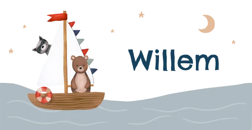 Een toffe RVS drinkfles met naam. De fles heeft een vrolijk design met een beer en wasbeer in een zeilbootje. Pas het ontwerp naar wens aan.
